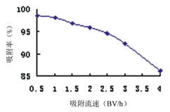 5 上樣液吸附流速對(duì)HZ816樹脂吸附性能的影響