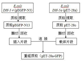 研究綠色熒光蛋白在大腸桿菌體內(nèi)的基因克隆和表達(dá)。通過質(zhì)粒重組形成所需要的重組質(zhì)粒pET-28a-GFP,將重組質(zhì)粒導(dǎo)入大腸桿菌體內(nèi),通過酶切、PCR及用IPTG誘導(dǎo)檢測是否在大腸桿菌體內(nèi)誘導(dǎo)表達(dá)成功。根據(jù)電泳結(jié)果及熒光現(xiàn)象得出結(jié)論,重組質(zhì)粒在大腸桿菌體內(nèi)成功誘導(dǎo)表達(dá)。